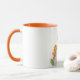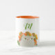Cute, cartoon, cat with orange spring flowers. Girly, adorable monogrammed mug.