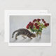 Cat and Red Roses – Realistic Oil Painting Print Postcard