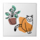 Cat and the plant ceramic tile