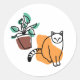 Cat and the plant classic round sticker