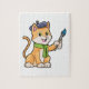 Cat as Painter with Brush & Scarf Jigsaw Puzzle