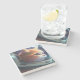 The coasters are gorgeous, a quality feel and heavy weight. They look like a precious archeological find. A rustic stone juxtaposed with a modern floral black and white print. I like the way the print goes slightly imperfect on the cut stone edges giving them a kind-of natural beauty.