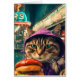 A cat in a purple jacket at the diner where it has ordered a cheeseburger All rights reserved © Angelandspot