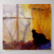 Print from acrylic painting entitled Cat at Window with Yellow Curtains
