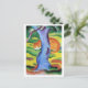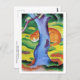 A fine art postcard featuring the painting, Children's Picture - also known as Cat Behind a Tree (1912) by the German expressionist artist Franz Marc (1880-1916). A ginger-coloured cat sleeping behind a blue tree in the grass. Marc used primary colours in his expressive paintings. He was also a member of the Blue Rider Group of artists.