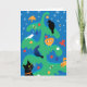 A fun and modern Holiday card. The whimsical Christmas tree is filled with birds — among them a crow, owl, blue jay and hummingbird. Blackberry, the cat, is quite interested, and the squirrel is concerned. Add your custom greeting on the inside or use the matching "Happy Holidays" type.
