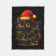 Cat Black Christmas Tree Lights Funny Santa Kitten Fleece Blanket
