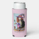 A cute red haired witch all in purple with her black cat sitting on a pile of books. Potions, spider and candle in a backdrop of pink.