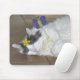 Photograph of a cute, fluffy Maine Coon Cat sleeping, and the Butterfly and yellow Flower were painted onto the photograph, displayed on a Mousepad.
