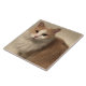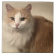A ceramic tile featuring a photo of a gold and white long haired cat.