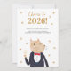 Welcome in the New Year with a playful twist! This fun and whimsical design features an suave and sophisticated anthropomorphic golden cat dressed in a tuxedo and bow tie, holding a glass of celebratory Champagne against a gold, black, and white palette. Personalize all text to include your greeting and name(s). Perfect for animal lovers, cat fans, and anyone with a sense of humor. Original art by Nic Squirrell.