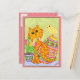 Send a unique, uplifting springtime greeting with this colourful folk art postcard to celebrate Easter or any springtime holiday or special occasion. You can personalise the message on the back of the card or use the default "Happy Easter" text. In this colourful, whimsical artwork, This cute orange tabby cat sits next to a pot of tulips with his tail curled around a beautifully decorated egg. His friend the chick sits on top of the egg. The entire images is bordered by gold and a pink colour that matches the heart motif on the back of the card.