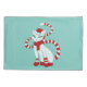 Cat Christmas pillowcase with a vector illustration of a cute and beautiful cartoon kitty with long eyelashes wearing a red hat, scarf, gloves and boots, its curled tail decorated with red ribbon. This pretty feline character is in a holiday mood, waiting for Christmas Eve to come.