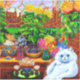 Sticker featuring Louis Wain’s animal painting Master of Cat College (1860-1939). A thoughtful white cat with striking blue eyes sits ponderously next to a vibrant assortment of beautiful flowers. The majestic cat college looms in the background underneath a pink and blue sky. A wonderful gift for cat lovers and English art.
