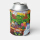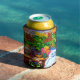 Can Cooler featuring Louis Wain’s animal painting Master of Cat College (1860-1939). A thoughtful white cat with striking blue eyes sits ponderously next to a vibrant assortment of beautiful flowers. The majestic cat college looms in the background underneath a pink and blue sky. A wonderful gift for cat lovers and English art.