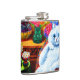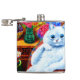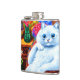 Flask featuring Louis Wain’s animal painting Master of Cat College (1860-1939). A thoughtful white cat with striking blue eyes sits ponderously next to a vibrant assortment of beautiful flowers. The majestic cat college looms in the background underneath a pink and blue sky. A wonderful gift for cat lovers and English art.