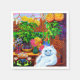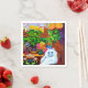 Napkins featuring Louis Wain’s animal painting Master of Cat College (1860-1939). A thoughtful white cat with striking blue eyes sits ponderously next to a vibrant assortment of beautiful flowers. The majestic cat college looms in the background underneath a pink and blue sky. A wonderful gift for cat lovers and English art.
