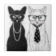 This design features a black female cat dressed up in pearl necklace and white male cat dressed up in dotty tie.