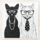 This design features a black female cat dressed up in pearl necklace and white male cat dressed up in dotty tie.