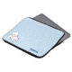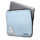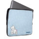 A laptop sleeve with a fun pattern and a cute cartoon cat couple. It has a blue background with white swirls. In the left corner it has a boy and girl cartoon kitten snuggling. In the right corner you can customise your name.