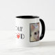 This cute, modern and unique design features two personalised photos on both sides of the mug. The quote "Cat Dad" with a little hand-drawn red colour paw in the shape of a heart is featured in the centre of the mug. The modern and trendy typography makes the design fun, unique and special.