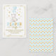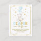 Whimsical diaper raffle insert card featuring an adorable little kitten with heart-shaped balloons in blue and gold