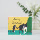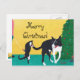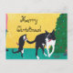 Cute and funny painting of an adorable black and white cat and black and white dog playing by the Christmas tree is printed on holiday postcards. It looks like the cat is ready to grab the dog's tail. Thank you for shopping at CherylsArt on Zazzle.