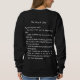 The back of the dress has a drabble (100 word short story) called "The Price of a Soul". The front has an outline of a cat in word fragments from the story. This is the white text version for dark clothing.