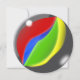 Big colourful cat eye marble birthday party invitation with graphics of a green, yellow, blue, and red cat's eye marble as the background, on this unique round invitation. Customise the text for your child's birthday party. Add a bag of marbles as a party favour, for each child, and start the games. Great retro party idea for boys and girls.