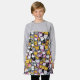 A fun doodle illustration of the faces of cats edged with a bold black outline. There are grey, black, orange and white cats with pointed ears huddled up next to each other in a collage seamless, repeating pattern. This watercolor comic style ai graphic is the perfect gift for cat lovers or for your own personal catering needs. Cook up a storm with this fun and modern apron.