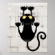 Fun Black Cat Cartoon Falling down a Wall - or a Curtain - and Scratching it all! Originally Created on Vector Graphic Art Technique. Design Copyright BluedarkArt TheChameleonArt.