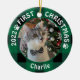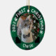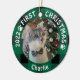 Cat FIRST CHRISTMAS Green Buffalo Plaid 2 Photo Ceramic Ornament