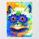 Window Cling featuring Louis Wain’s animal painting Cat Flower Eyes (1860-1939). A rainbow cat widely grins. Blue flowers cover his eyes. A wonderful gift for cat lovers and English art.