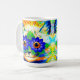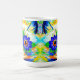 Coffee Mug featuring Louis Wain’s animal painting Cat Flower Eyes (1860-1939). A rainbow cat widely grins. Blue flowers cover his eyes. A wonderful gift for cat lovers and English art.