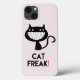 NewParkLane - Fun iPhone 6/6s Barely There Phone Case with a smiling black cat and text: Cat Freak! in modern typography. You can change the background color to your own liking.