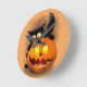 Cat Fun Halloween Character biting a Pumpkin Round Clock