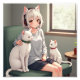 a girl with headphones sitting next to a white cat and a white cat sitting next, Miho Hirano, furry art