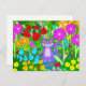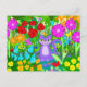 Cat Garden Colourful Flowers Butterflies Ladybugs Postcard