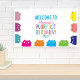Modern, trendy, kawaii, cute, colourful Purrfect Birthday party welcome banner, with funny cat pattern.