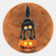 Cat Halloween Scared Cartoon on Pumpkin Classic Round Sticker