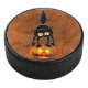 Cat Halloween Scared Cartoon on Pumpkin Hockey Puck