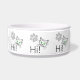 Hi text and drawings of a cat face with green eyes and a paw. Cats greetings. Funny bowl for pets or cats.