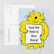 Save the date. A Cat is holding a board ready for you to add your own message and also on the reverse side. Save the day.