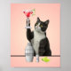 Cat holding Pink Martini Pink Background Art Poster