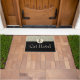 Cats treat our homes like hotels, coming and going just as they please, expecting breakfast and dinner on a plate and a nice comfy place to sleep. The door mat looks like a hotel sign with the name Cat Hotel in stylish cream lettering on a black panel. Above is a vintage black and white illustration by Louis Wain of a cat couple sitting on a wall, paws and tails wrapped around each other inside a cream circle shape. Across the top of the design is a pattern of little cream and brown cat's paw prints on soft grey. You can change the grey colour to suit with the customise button, also the name. The perfect door mat for feline loving friends and family.