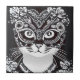 Ceramic tile in an image of a cute cat, wearing an elegant Mardi Gras mask in black, white.and light grey.