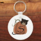 Cat in a pumpkin with the letter s. This design looks really effective on these Keychain