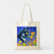 Tote Bag featuring Louis Wain’s animal painting Cat in Sea of Flowers (1860-1939). A black and white cat with golden eyes smells yellow flowers. In the purple background are blue flowers. A wonderful gift for cat lovers and English art.