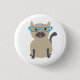 A cute grey cat wears a pair of cat eye glasses on a pin button