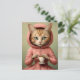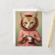 Cat in Pink Coat With a Coffee Postcard